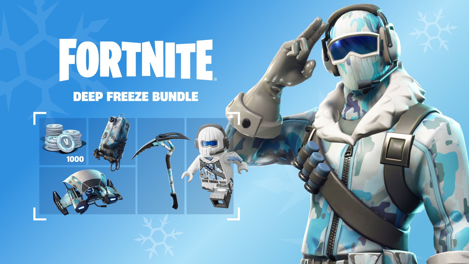 Jump into Fortnite with the Deep Freeze Bundle. Guaranteed to keep you warm on the battlefield, despite its chilly name! Includes: